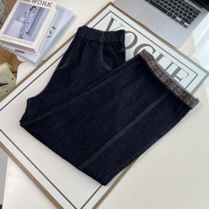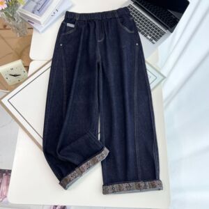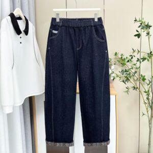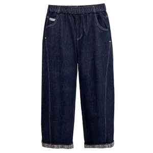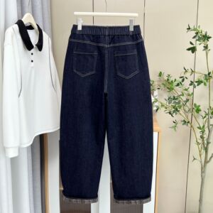 2025秋季新款大码女装200斤胖妹妹休闲松紧腰卷边牛仔哈伦裤8143