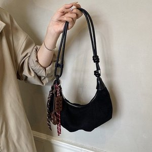小众设计复古手提饺子包包女2025秋季新款磨砂轻奢撞色单肩斜挎包