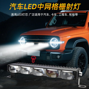 跨境12V汽车LED中网格栅3透镜射灯黄白双色铺路工作灯前照灯射灯