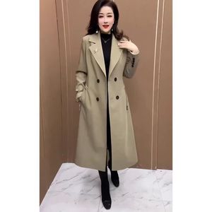 2025卡其色长款中长款新款外套春秋气质韩版风衣毛呢双排大衣