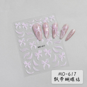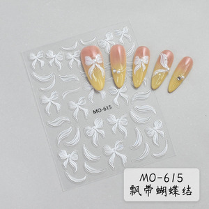 飘带蝴蝶结美甲贴纸浮雕立体纯白粉色ins风幻彩diy穿戴甲指甲贴纸