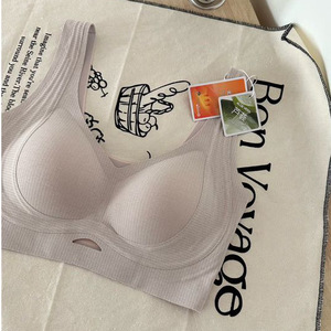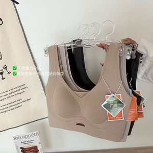 竖纹肌理背心内衣女薄款大胸显小胸聚拢舒适无痕磨毛文胸保暖美背