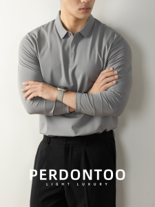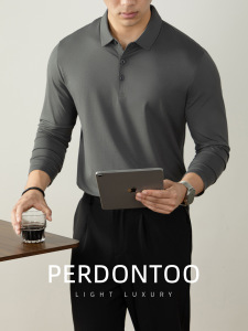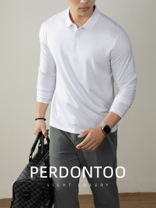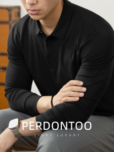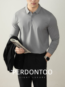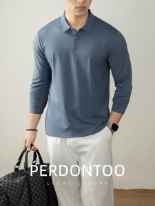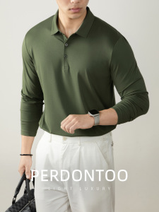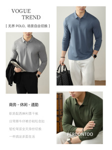 【高定兰精莫代尔】轻商务休闲Polo衫男士春秋长袖老钱风翻领T桖