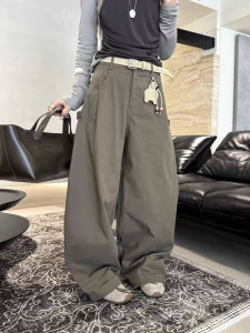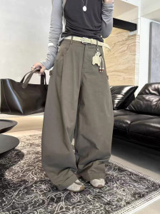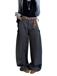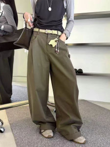 2025秋季新款美式拼接弯刀阔腿休闲裤设计感小众宽边宽松阔腿裤
