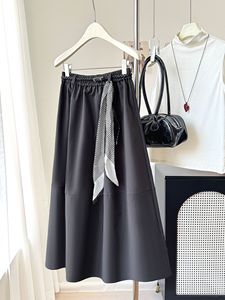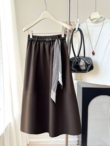 韩系复古2025早秋新款松紧腰丝带宽松显瘦半身裙百搭A字半身裙女