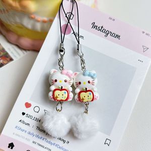 新款卡通苹果小猫咪手机链可爱树脂钥匙扣书包挂件情侣闺蜜礼物