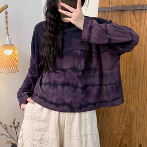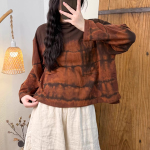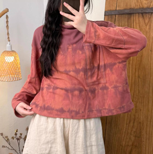 2025秋季新款复古扎染做旧弹力柔软针织棉磨毛高领上衣 女