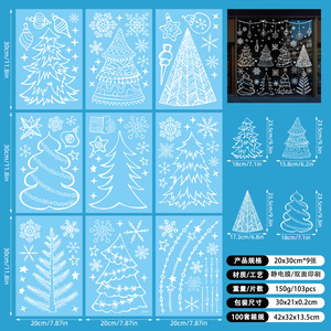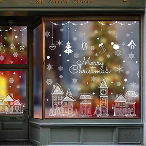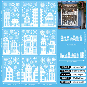 2026款白色房屋圣诞树圣诞雪花窗贴圣诞节商场橱窗玻璃装饰静电贴