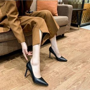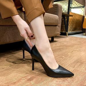 软皮工作鞋女黑色久站不累脚软皮职业单鞋舒适软底空乘高跟鞋细跟