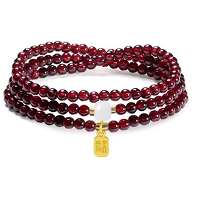 4mm石榴石清水和田玉青玉福牌三圈手链