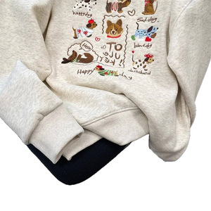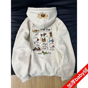 韩系流行新款重工刺绣狗狗连帽卫衣女秋冬复古减龄可爱加绒外套薄