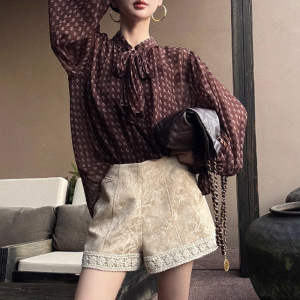 2025秋【钟灵】复古小众印花衬衫上衣女秋季法式飘带减龄洋气衬衣