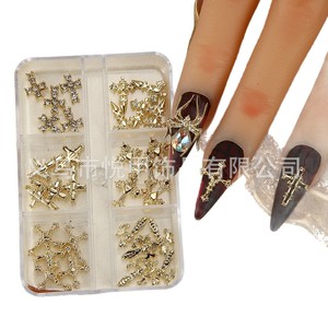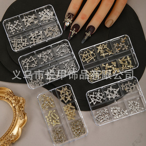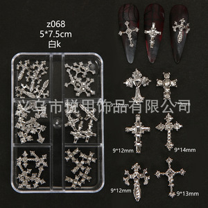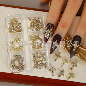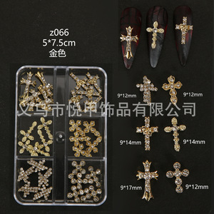 暗黑朋克风6格合金克罗心美甲饰品金属质感镶 水钻十字架美甲饰品