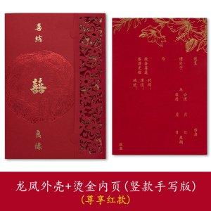 龙凤镂空请帖+竖版烫金手写内页(10份)