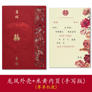 龙凤镂空请帖+米黄手写内页(10份)
