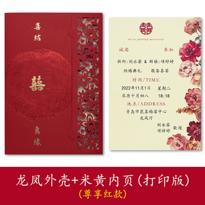 龙凤镂空请帖+竖版烫金打印内页(10份)(20份起打印)