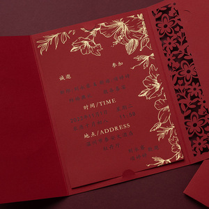 红韵镂空请帖+烫金打印内页(10份)(20份起打印)