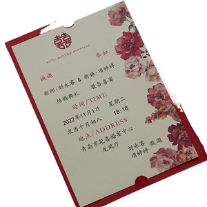 红韵镂空请帖+竖版烫金打印内页(10份)(20份起打印)