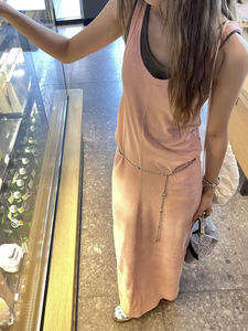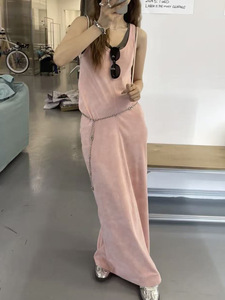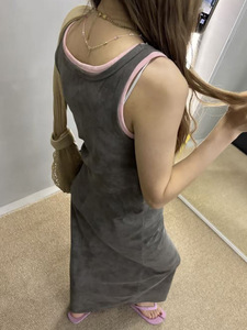 假两件立体裁剪吊带背心连衣裙女夏法式赫本风针织长款无袖裙跨境