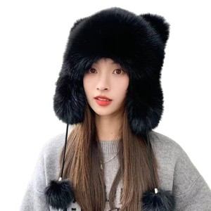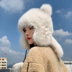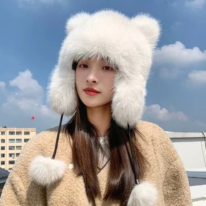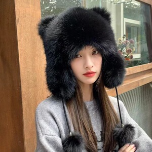 跨境可爱尾巴毛绒小浣熊帽子女秋冬季加厚保暖护耳仿狐狸毛甜美