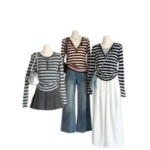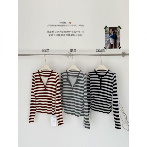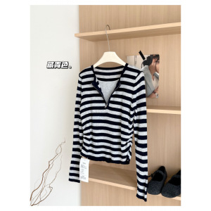 假两件条纹针织衫女2025秋季新款修身显瘦时尚百搭上衣