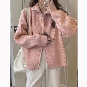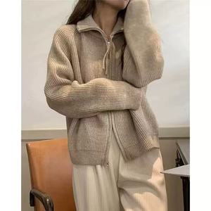 双拉链毛衣外套秋冬新款韩系女上衣慵懒风宽松设计感针织开衫气质