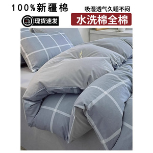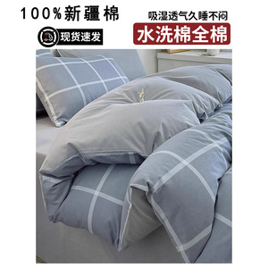 纯棉床上四件套2025新款新疆全棉纯色被套床单被罩宿舍三件套床品