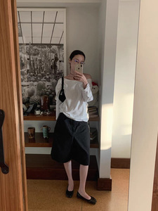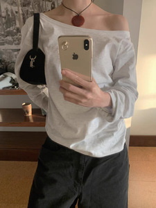 现货2025秋季新款韩版De*rest宽松纯色简约显瘦斜肩长袖T恤上衣女