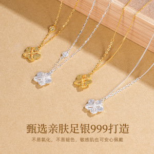 蒂奇亚实拍纯银999四叶草项链女小众轻奢高级感精致百搭五花项饰