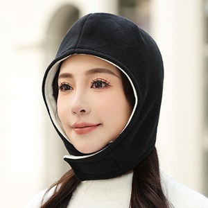 秋冬运动滑雪双层帽子围脖保暖骑行小帽防风锁温抓绒帽加长护耳帽