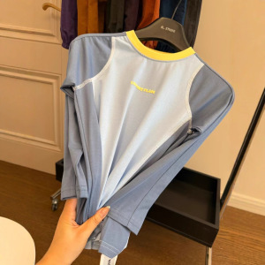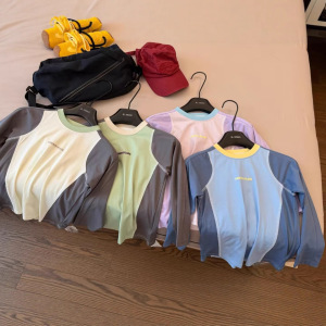 秋季男女童新款户外拼色长袖T恤+户外束脚速干宽松休闲裤裤两件套