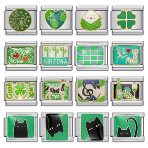 绿色系钛钢焊接镀金滴油手镯 卡通DIY意大利模块手链配件批发