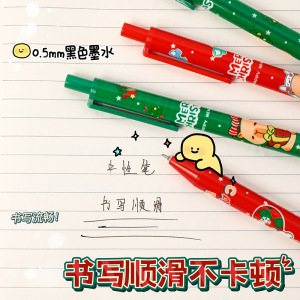 卡通圣诞按动笔可爱按压式水笔圣诞节日中性笔学生学习文具签字笔