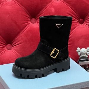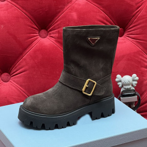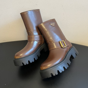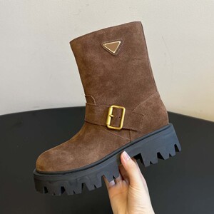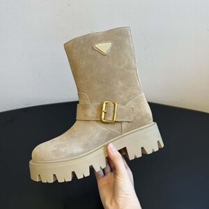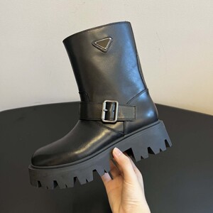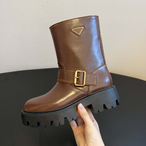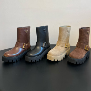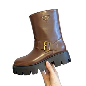 牛皮版~复古擦色骑士靴2025冬新款厚底粗跟马丁靴皮带扣中筒靴女