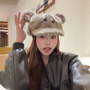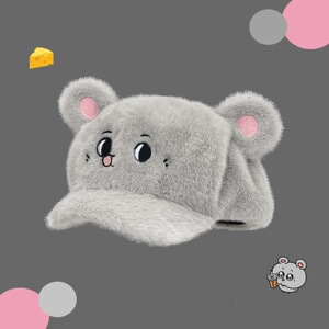 可爱毛绒帽子秋冬鼠鼠保暖护耳帽萌趣百搭卡通加厚鸭舌帽软糯帽子