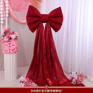 珠光【酒红】飘带蝴蝶结-80#(蝴蝶结80*60cm+飘带4米)