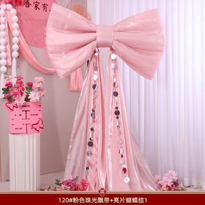 珠光亮片【粉色】飘带蝴蝶结-80#(蝴蝶结80*60cm+飘带4米)