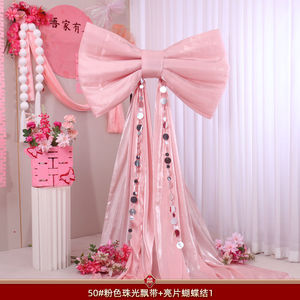 珠光亮片【粉色】飘带蝴蝶结-50#(蝴蝶结50*38cm+飘带3米)