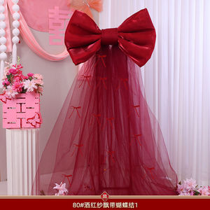 珠光纱【酒红】飘带蝴蝶结-80#(蝴蝶结80*60cm+飘带4米)
