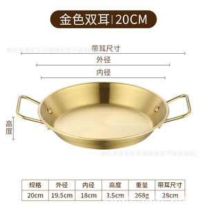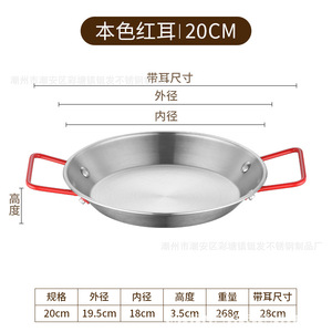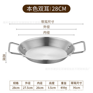 跨境西班牙海鲜锅加厚不锈钢双耳平底汤锅韩式泡面锅商用部队火锅