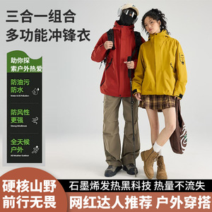 冲锋衣定制薄款加绒三合一两件套情侣款防风户外登山露营外套旅游