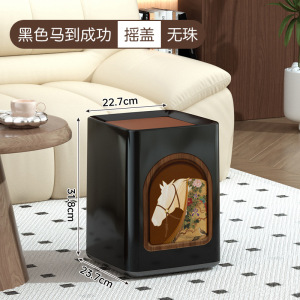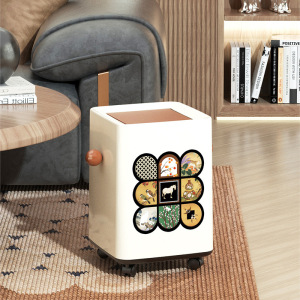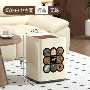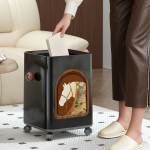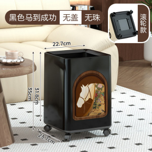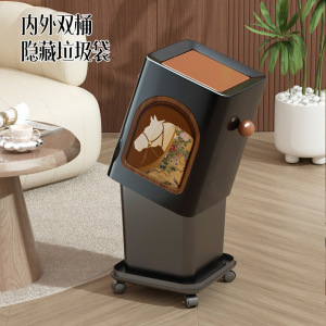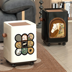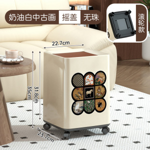 2025新款垃圾桶家用高颜值客厅厨房卧室中古风带盖带滑轮可移动桶