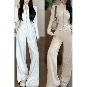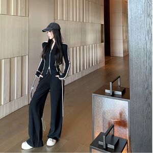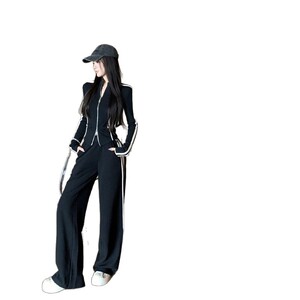 小香风气质外套休闲运动套装女秋春季阔腿拖地裤两件套