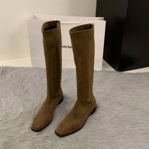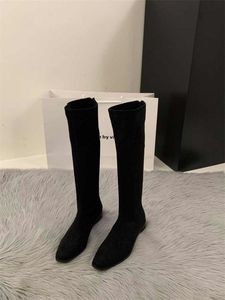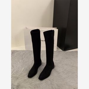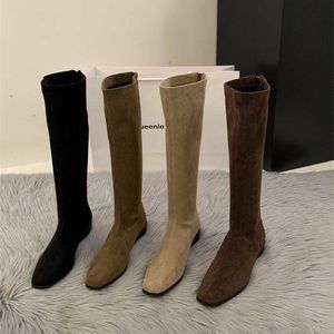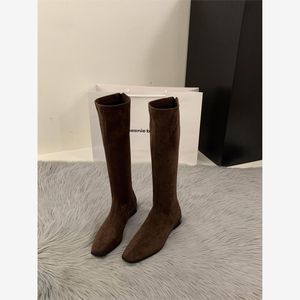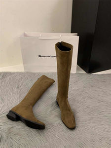 粗跟尖头绒面瘦瘦长筒靴女靴鞋2025新款秋季绝绝长靴中筒骑士靴子