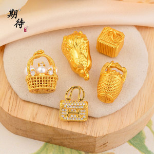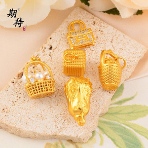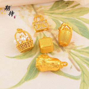 越南古法沙金diy配件一桶金吊坠时尚精致版珍珠花篮挂饰饰品配件