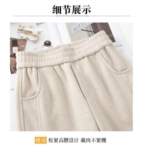 羚羊绒磨毛阔腿裤女秋冬新毛呢开叉裤子休闲百搭直筒窄版香蕉裤女