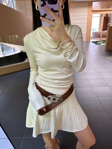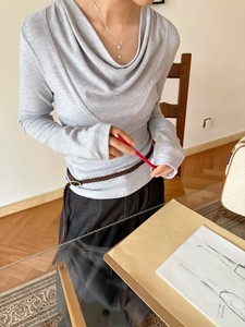 DIGM | 2025秋季极简解构风荡领长袖修身T恤打底衫针织衫女A09266