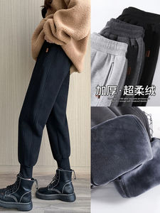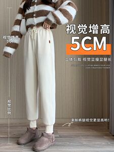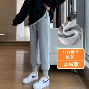 加绒卫裤女冬季外穿哈伦休闲裤子宽松束脚小个子灰色运动裤女秋冬