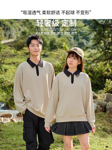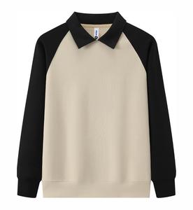 卫衣定制印字logo餐饮奶茶店翻领长袖polo衫拼色宽松团体工作服装