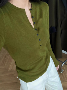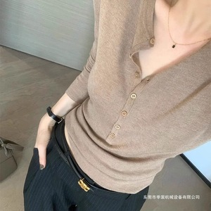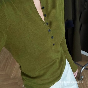 老钱感V领针织打底衫女2025秋季修身内搭羊毛衫复古毛衣上衣